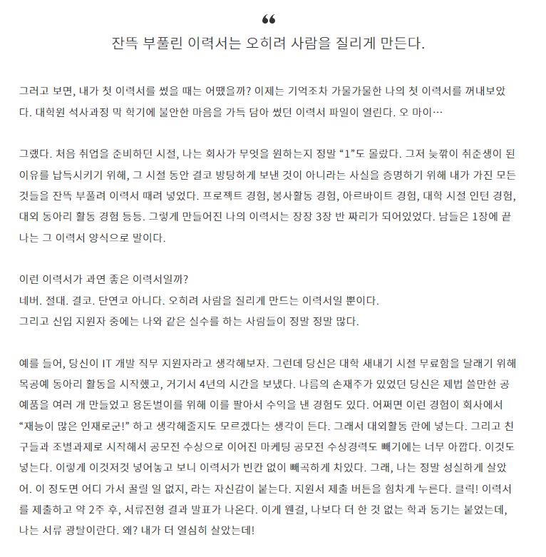 잔뜩 부풀린 이력서는 오히려 사람을 질리게 만든다.