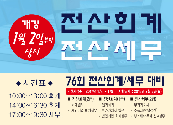 전산회계/세무 자격증과정 ◆1월 2일 개강◆