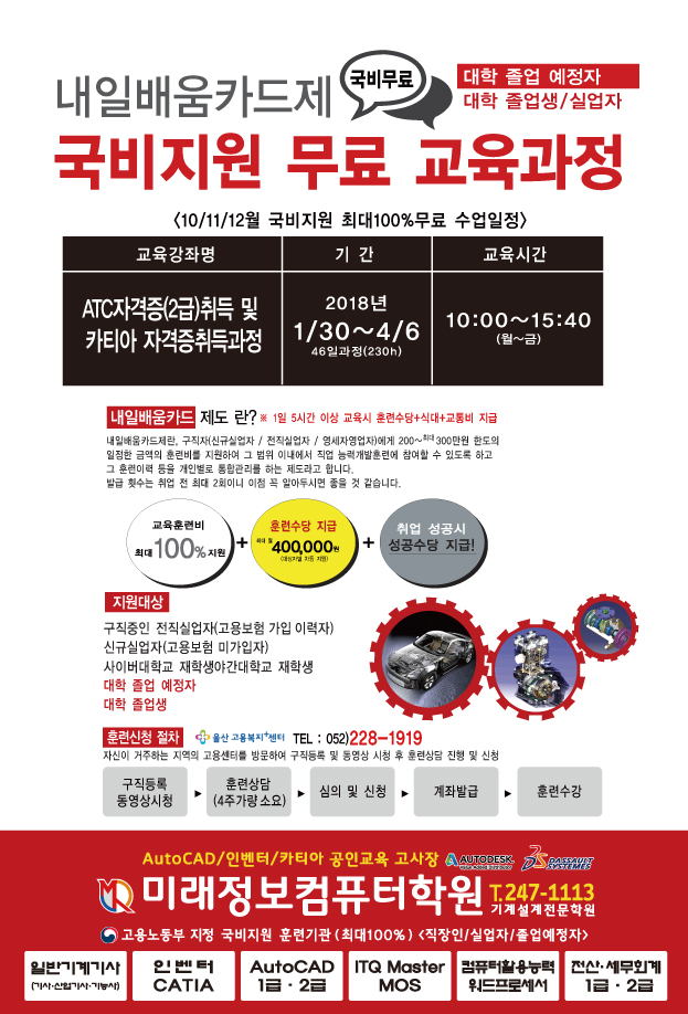 : 실업자 과정 선착순 모집중!!(캐드+카티아 자격증 과정)