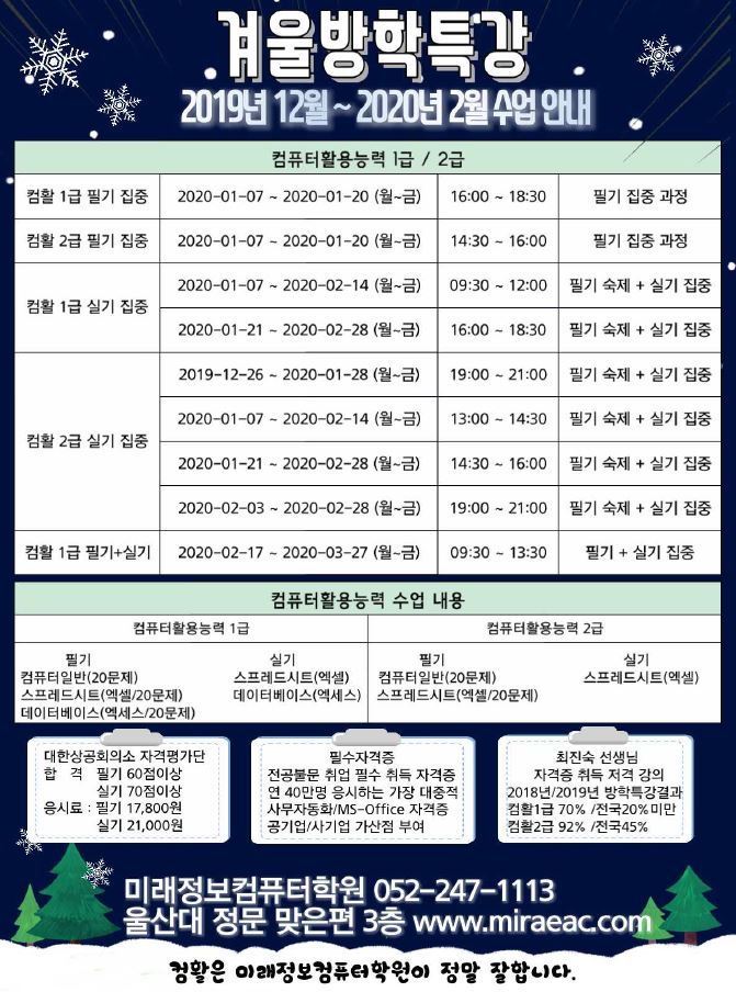 : (방학)회계/세무 수업 개강안내 (12월~2월)