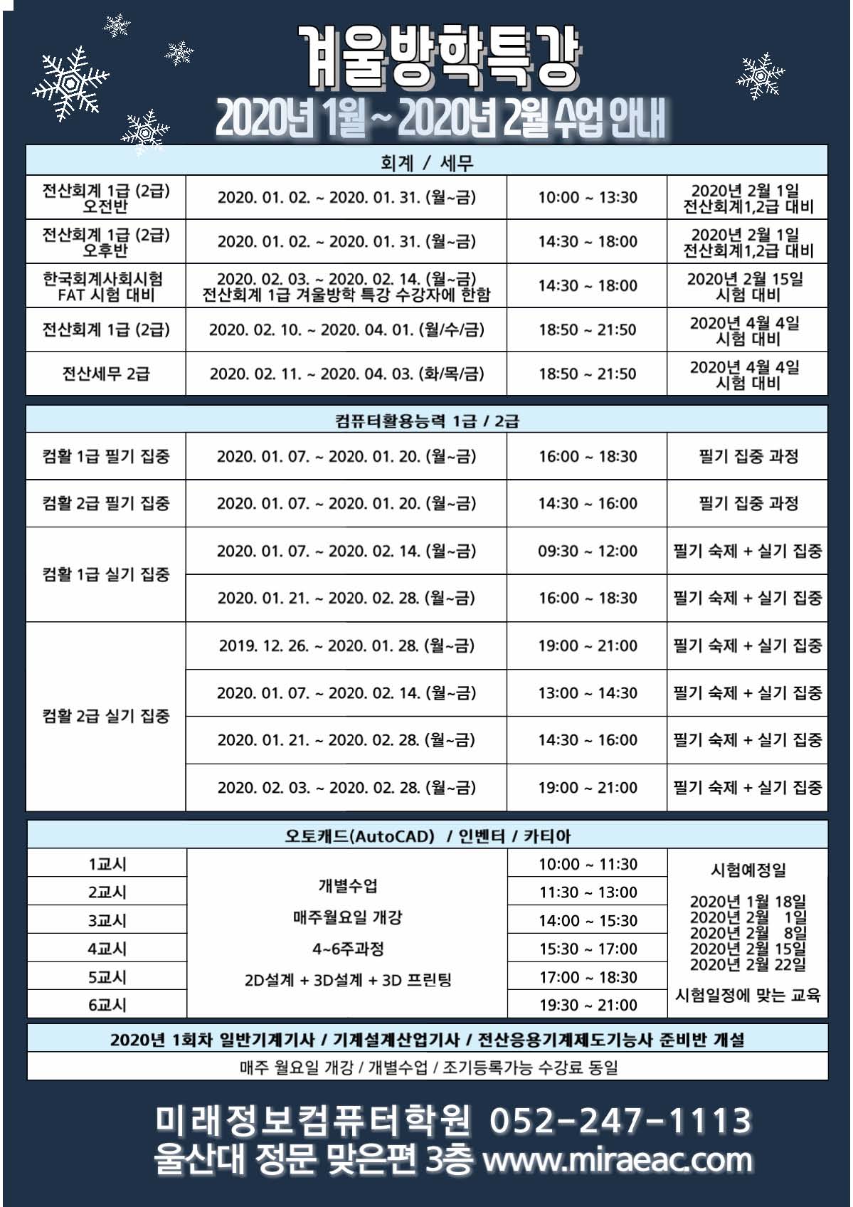 2020년 겨울방학 시간표
