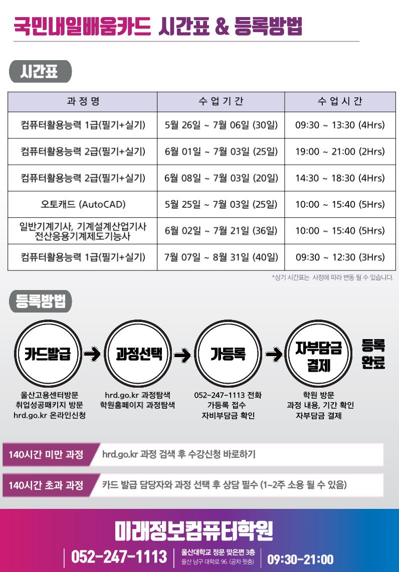 : 국민내일배움카드 6~9월 과정 안내