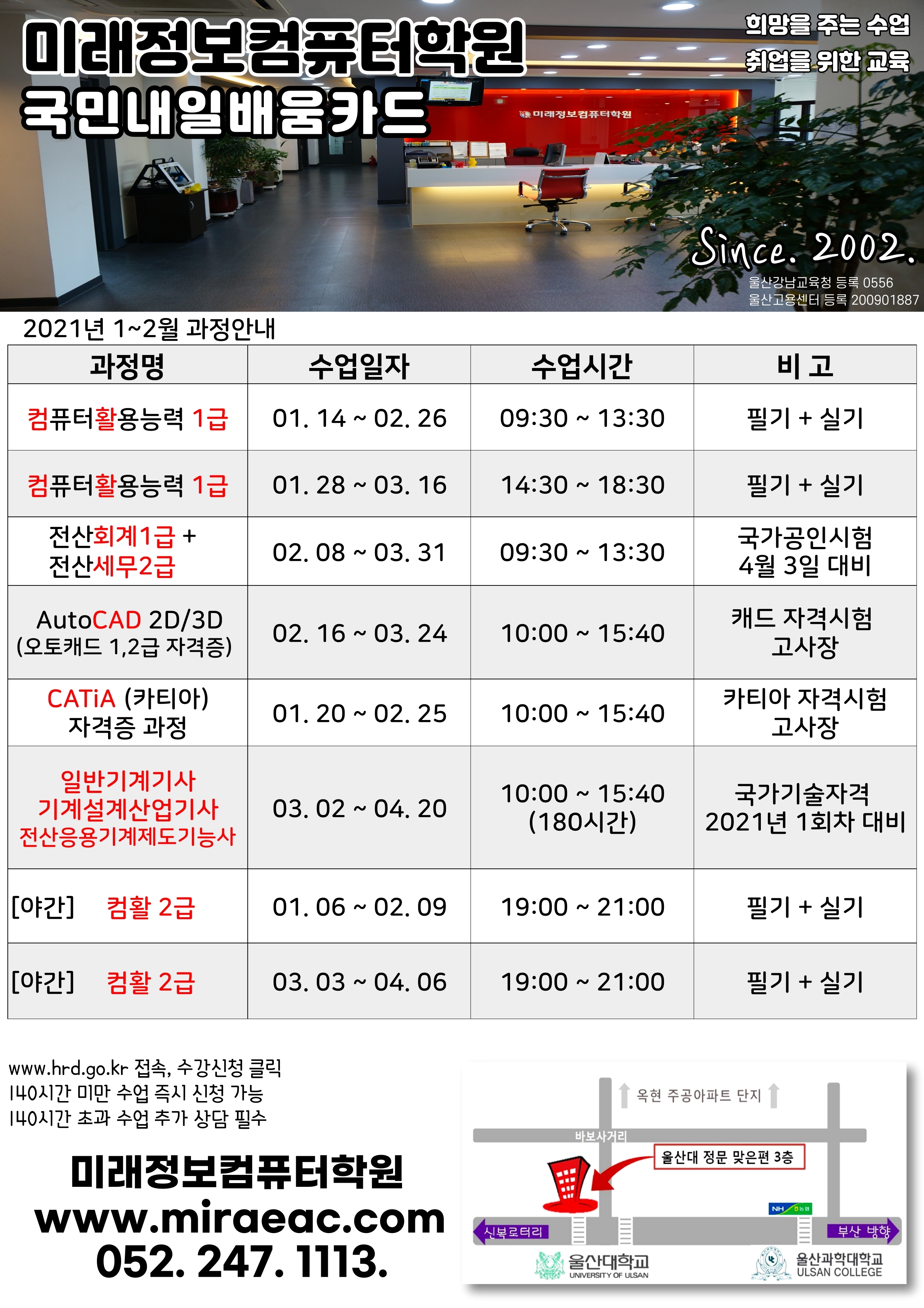 울산광역시 남구 대학로 96(무거동) 3층(울산대학교 정문 맞은편 3층)