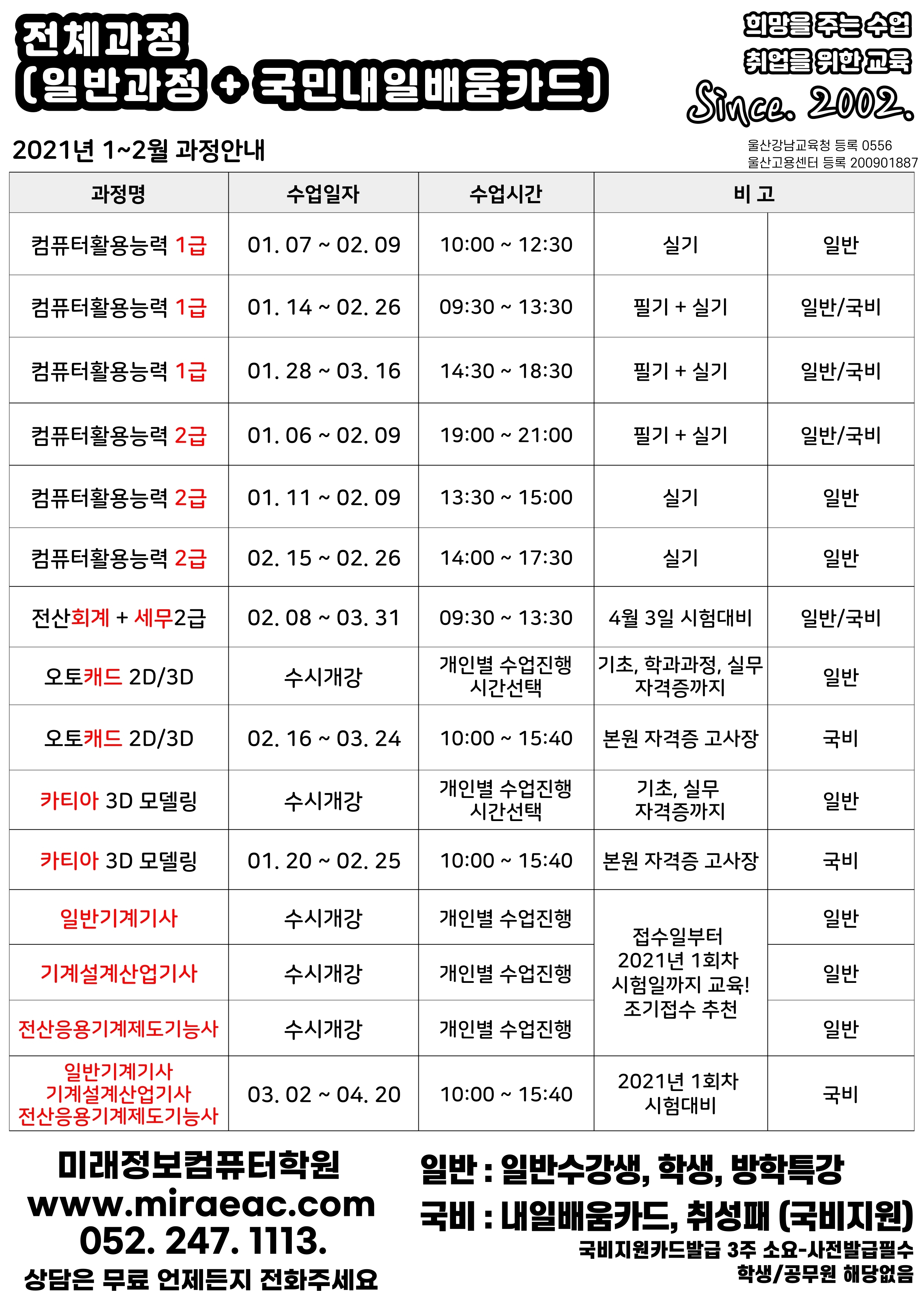 : 국민내일배움카드 2021년 1월 ~2월 과정 안내