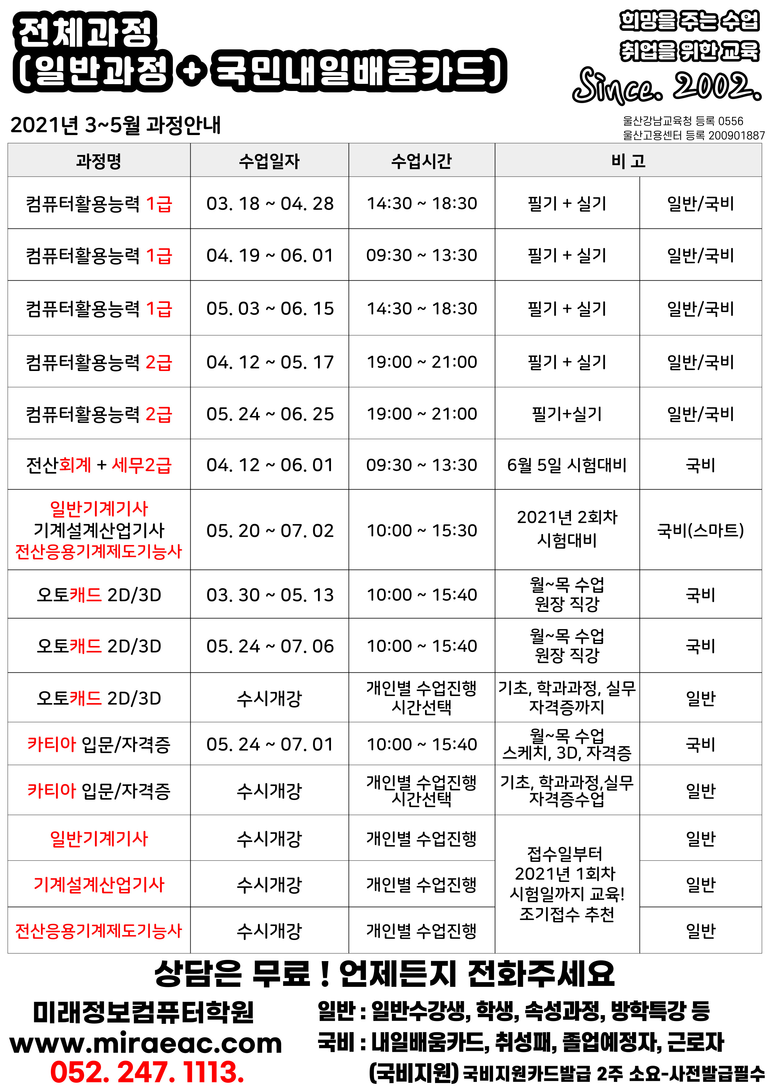 2~5월 과정 안내 (국민내일배움카드&일반과정)