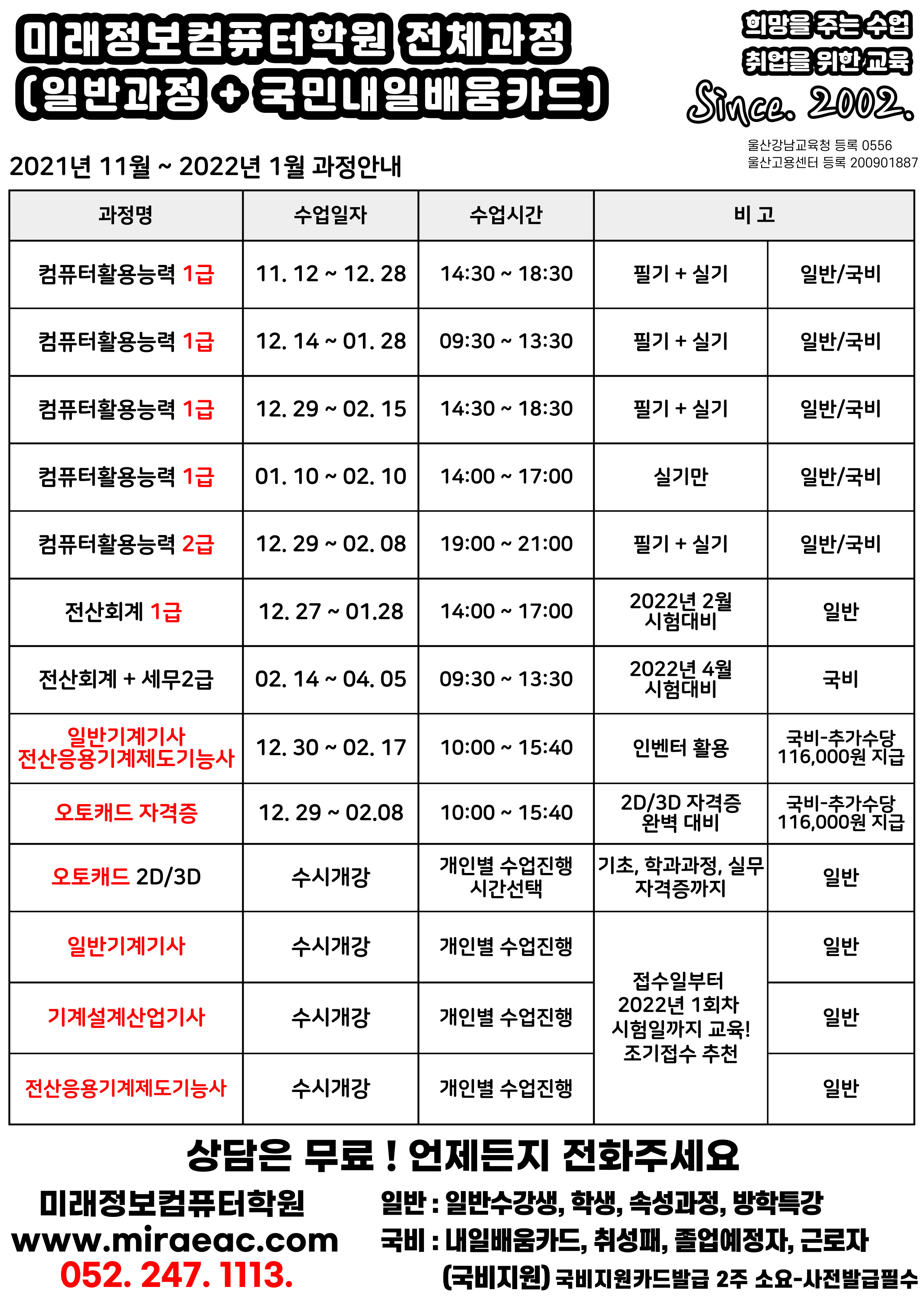 2021년 12월 ~ 2022년 1월 과정 안내