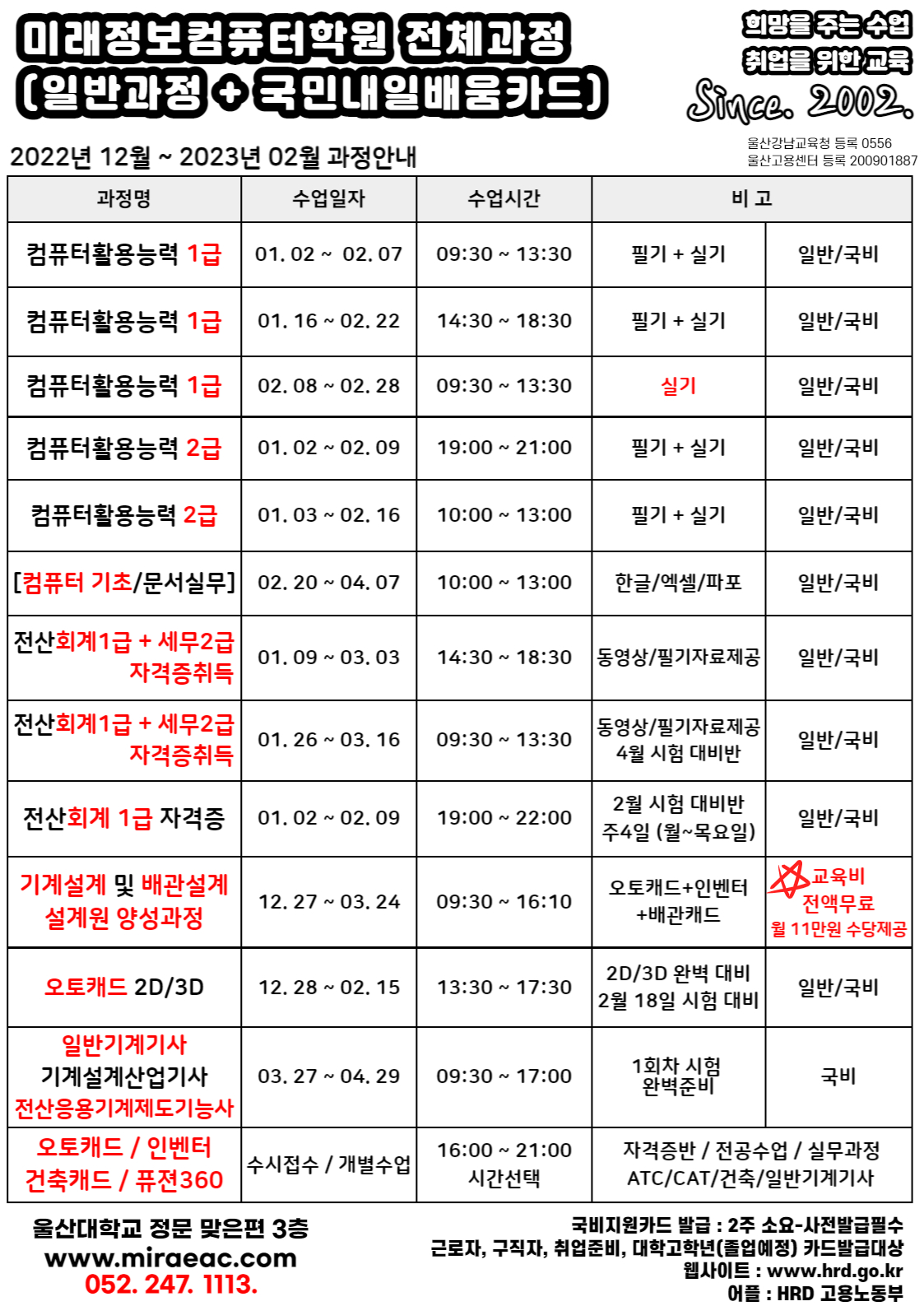 2022년 12월 ~ 2023년 1월 과정안내 (겨울방학)