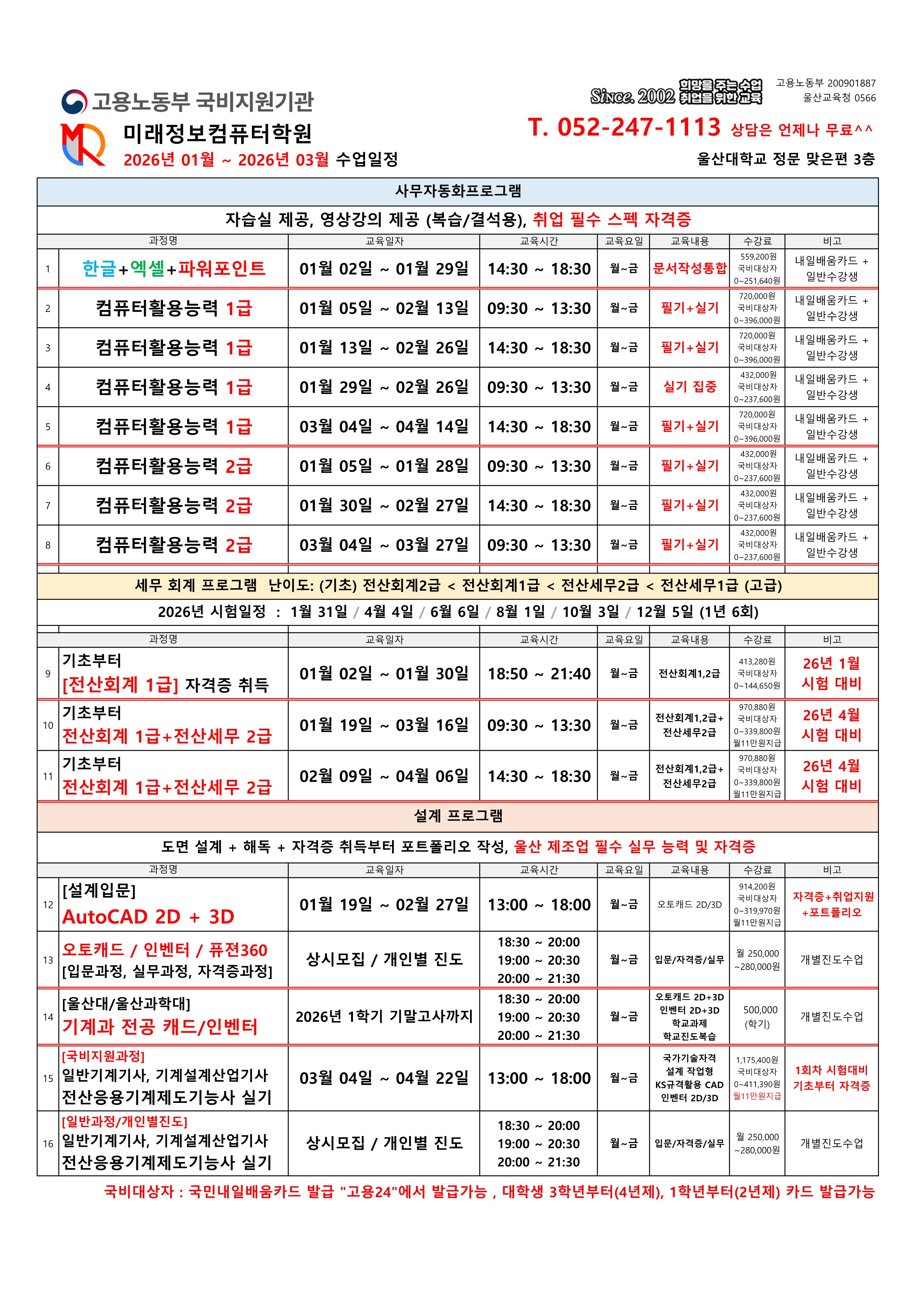 26년 1월 ~ 26년 3월 겨울방학 과정안내