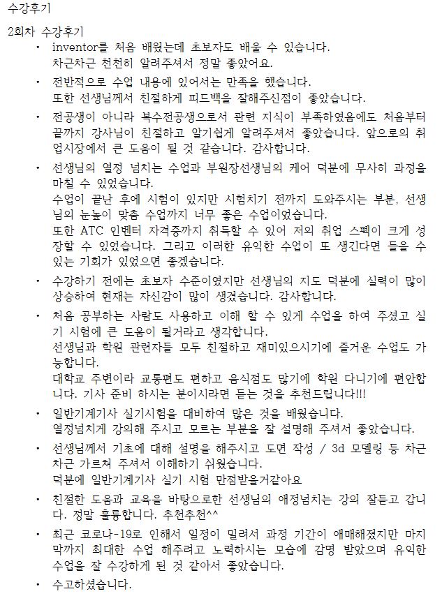 일반기계기사 국비과정 20200310-0507 수강후기 모음