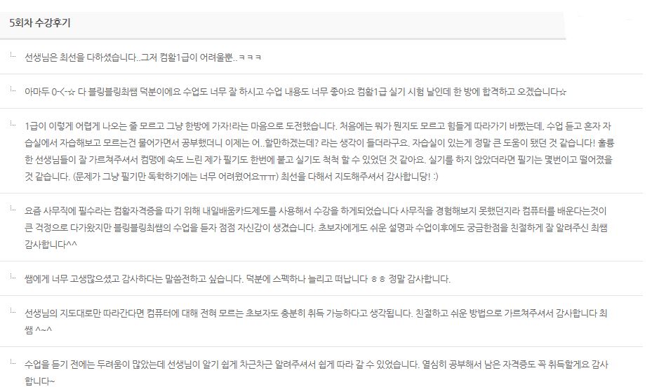 : 컴활2급 수강 후기