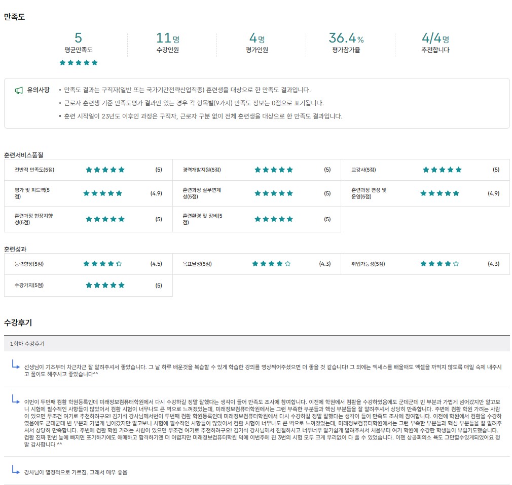 | 25년 컴활1급 실기과정 수강후기 | |||