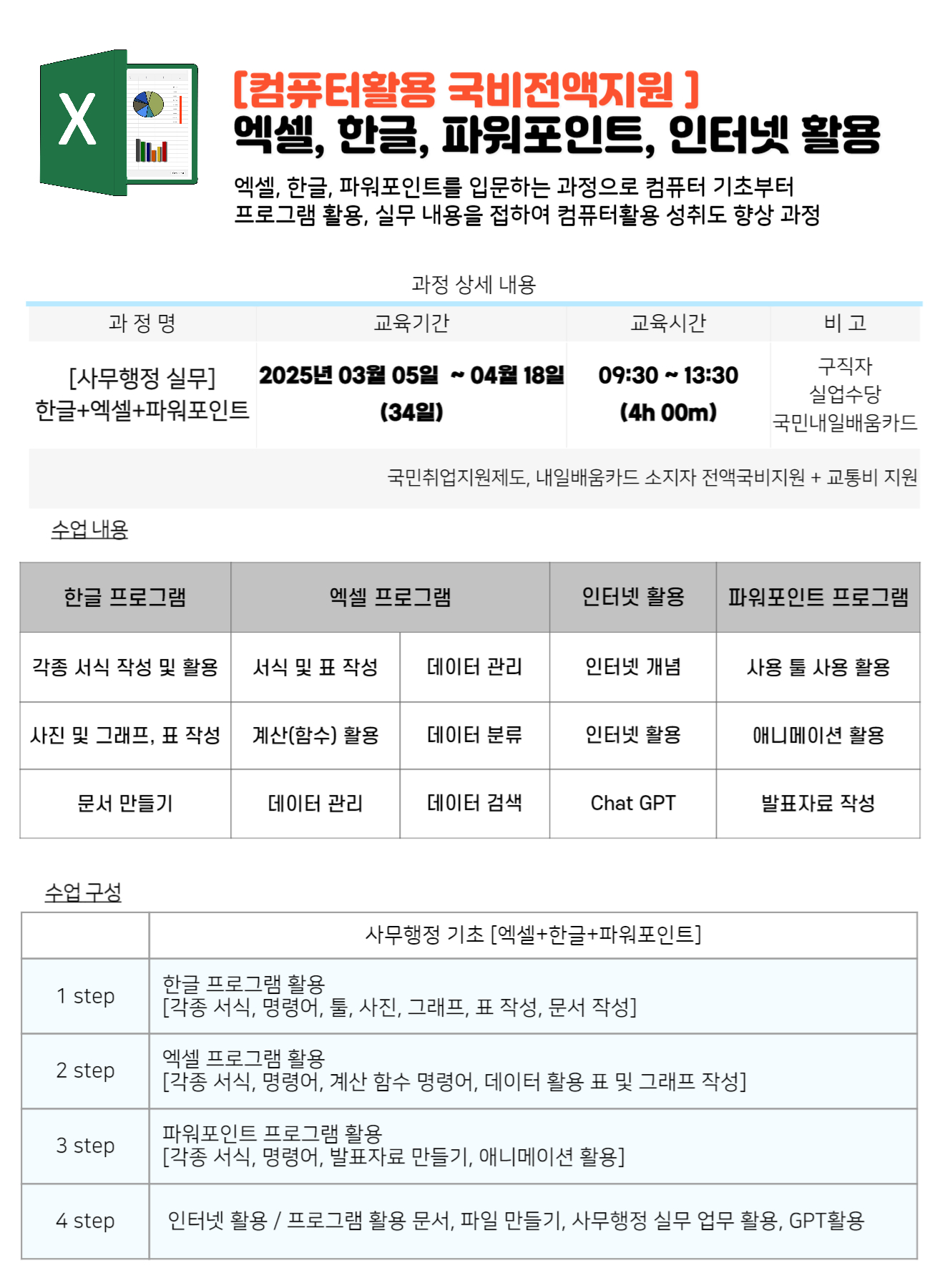 스마트 사무행정 실무자 (한글+엑셀+파워포인트+GPT) [모집중] |