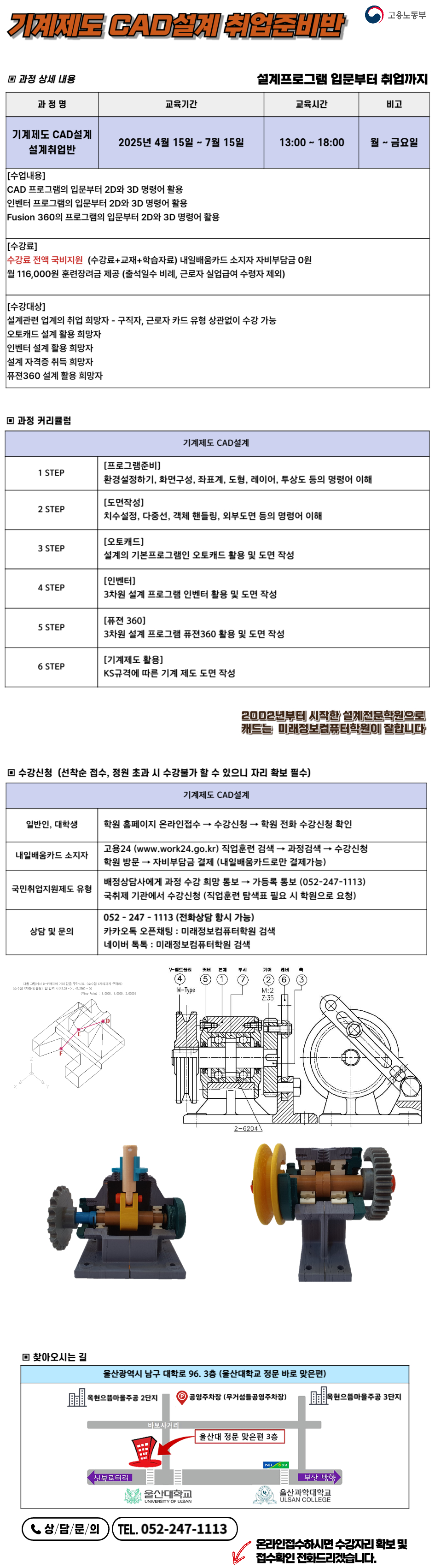 기계제도 CAD (오토캐드, 인벤터, 기계자동차부품 설계) [모집중] |