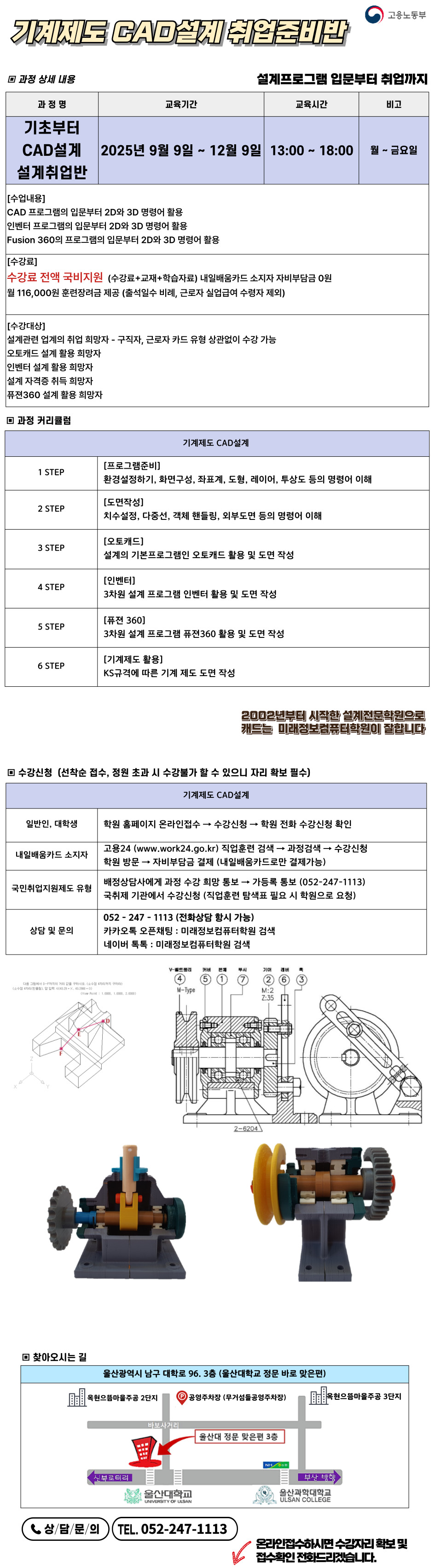 기계제도 CAD 취업반 (오토캐드, 인벤터, 기계자동차부품 설계) [모집중] |