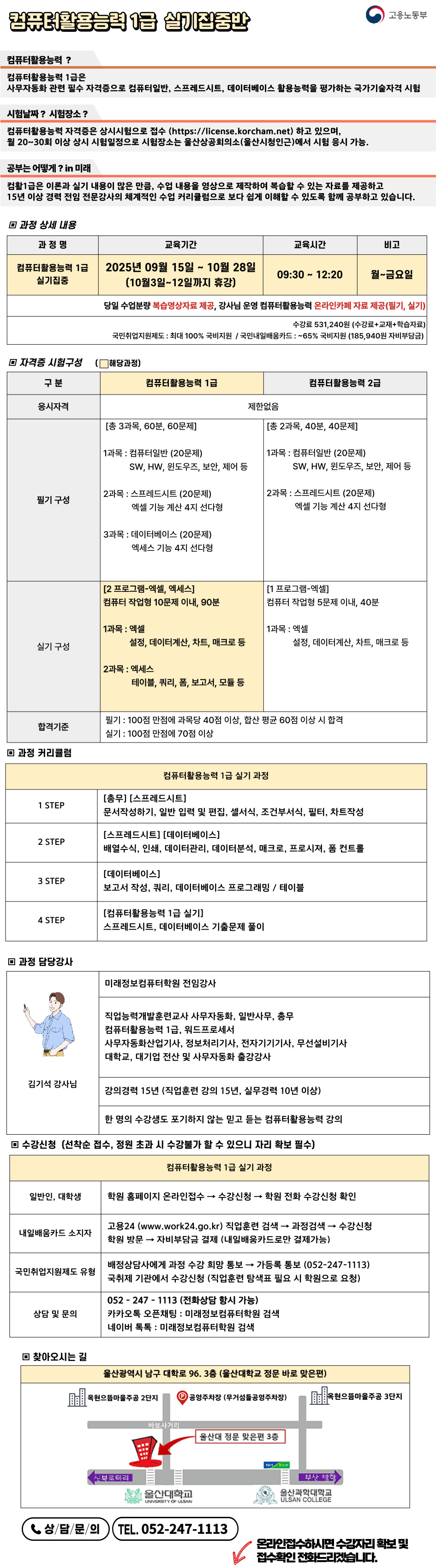 기초부터 엑셀, 액세스의 실기 자격증 대비 과정