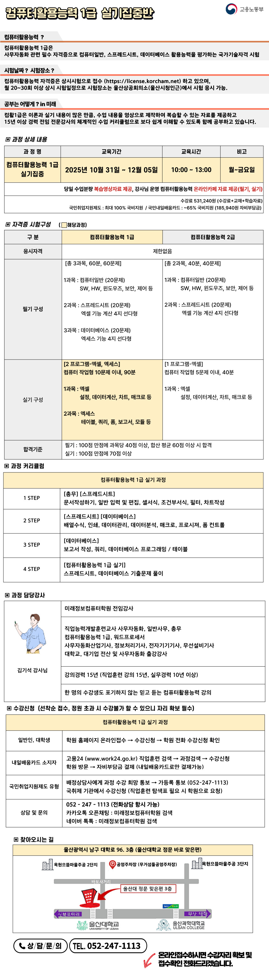 컴퓨터활용능력 1급 자격증 대비반