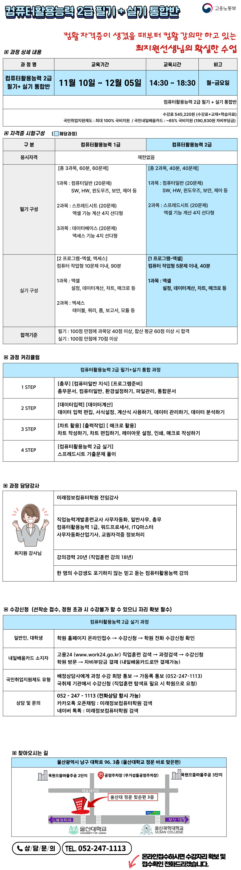 컴퓨터활용능력 2급 (필기+실기 통합반)